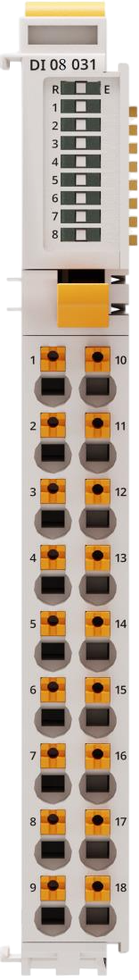 Модуль предназначен для ввода восьми дискретных сигналов с контролем состояния обрыва или короткого замыкания сигнальной цепи. К входам модуля должны быть подключены датчики по стандарту ГОСТ IEC 60947-5-6 (NAMUR). Каждый из каналов снабжен фильтром антидребезга с настраиваемой временной задержкой.