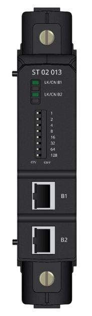Модули с артикулом ST 02 XXX поддерживают две шины RegulBus и могут работать в резервированных системах. У этих модулей на переднюю панель выведены два разъема, которые маркируется символами «В1» и «В2», обозначающие, соответственно, первую и вторую шину RegulBus.