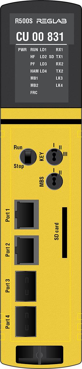 - коммуникационные порты: один RS-232 (на панели модуля Port 1), один RS-485 (на панели модуля Port 2), два порта Ethernet SFP (на панели модуля Port 3, 4);