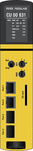 Переключатель RUN/STOP управляет запуском/остановом прикладного ПО. Режим «RUN» является основным режимом функционирования контроллера при его работе в составе системы управления. В данном режиме контроллера производится логическая обработка информации, формирование выходных воздействий в соответствии с прикладной программой. В режиме «STOP» прикладная программа не исполняется.