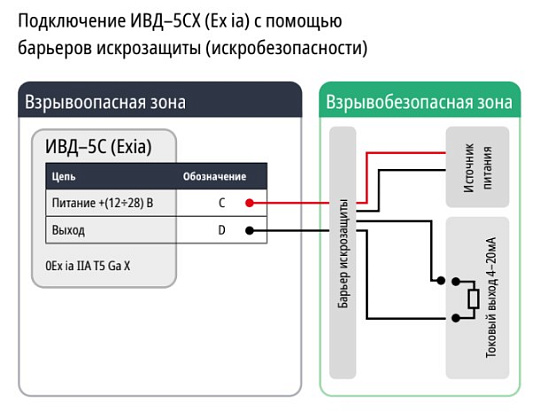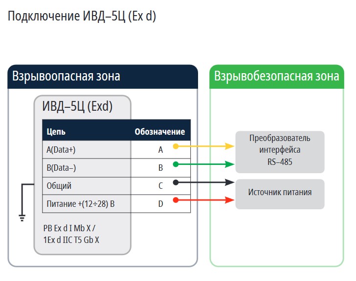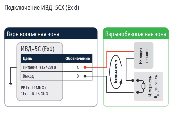Датчики ИВД–5 с общепромышленным исполнением имеют схемы подключения аналогичные схемам подключения ИВД–5 (Ex d).