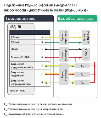 воспроизведение унифицированного токового сигнала 4–20 мА, пропорционального СКЗ виброскорости; -