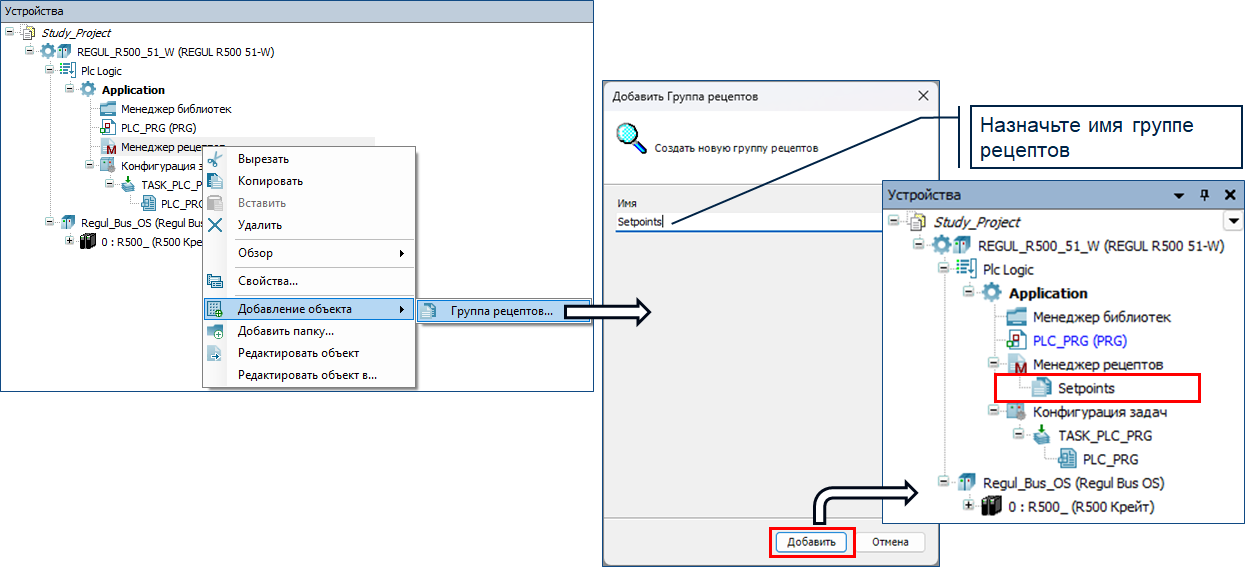 19.4. ДОБАВЛЕНИЕ ГРУППЫ РЕЦЕПТОВ Группа рецептов содержит один или несколько рецептов для переменных, включенных в состав группы. В состав менеджера рецептов может входить несколько групп рецептов.