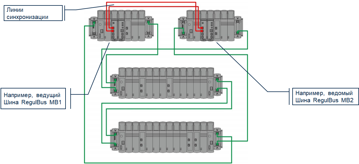 Модуль CU, который находится в ведомом состоянии, при потере связи со вторым модулем CU (обрыв линий синхронизации), может «видеть» состояние шины соседа через общие модули ввода/вывода, таким образом, принимая решение о своем статусе: оставаться ведомым или брать на себя роль ведущего.