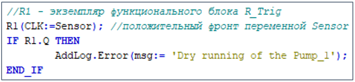 Сообщение в журнал myLog будет записано при изменении переменной Sensor с FALSE на TRUE: