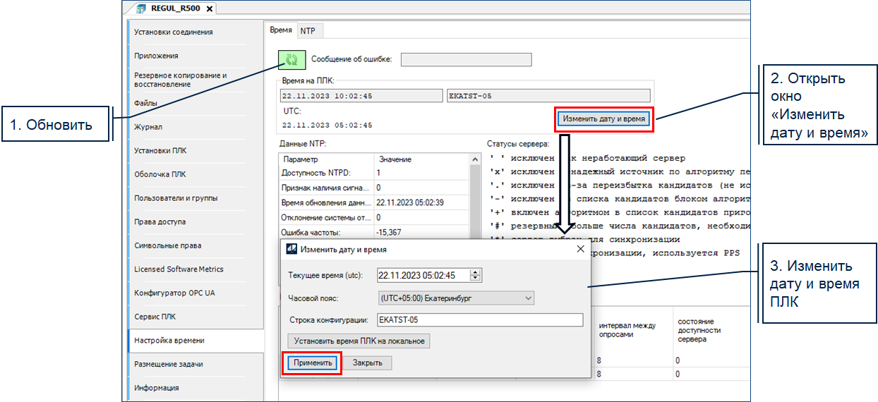 13.16. НАСТРОЙКА ДАТЫ И ВРЕМЕНИ ПЛК