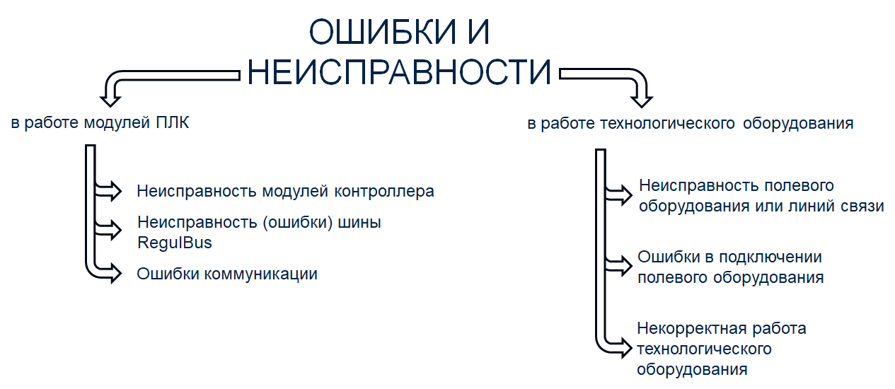 При вводе в эксплуатацию, а также в процессе работы контроллера и технологического оборудования могут возникать различные ошибки и неисправности.