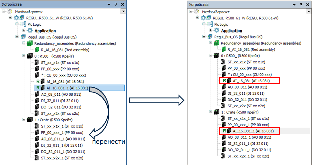 Модули резервированных сборок могут занимать любое местоположение в крейте или даже находиться в разных крейтах контроллера.