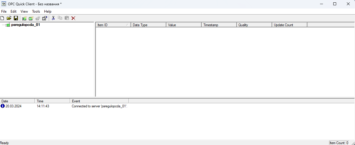 Запустите утилиту OPC Quick Client от имени администратора и добавьте REGUL OPC DA сервер.