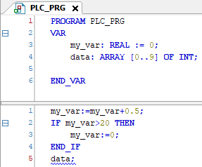 Перейдите в программу "PLC_PRG" и перепишите код, который представлен ниже.