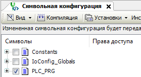 Перейдите в компонент "Символьная конфигурация" и в столбце "Символы" установите флаг в поле программы "PLC_PRG".