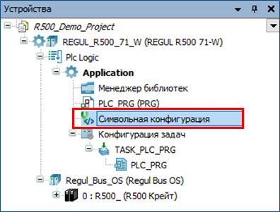 • В дерево проекта добавьте компонент "Символьная конфигурация".