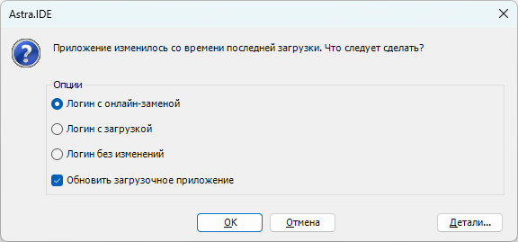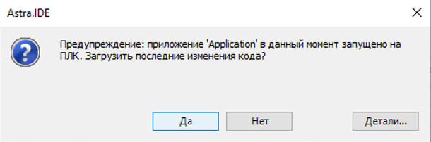 Произведите "Логин" к контроллеру. Так как были произведены изменения в аппаратной конфигурации контроллера, то логин с онлайн-изменением будет недоступен. В появившемся предупреждении нажмите "Да". Загрузка будет выполнена с остановкой контроллера.