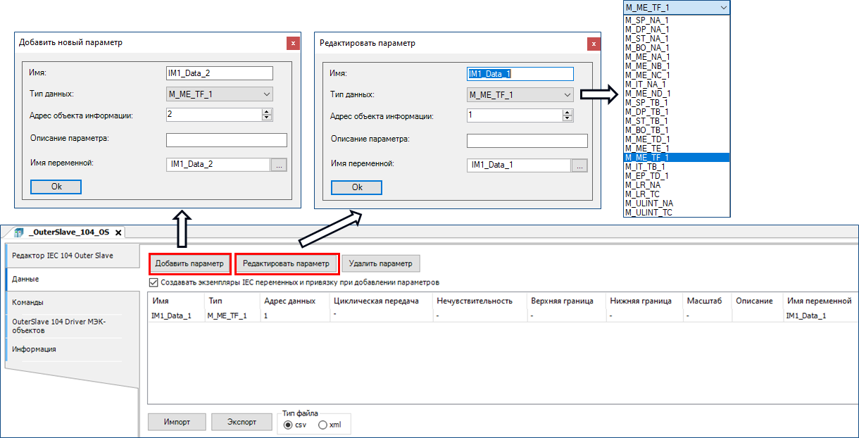 9.11. СОЗДАНИЕ И РЕДАКТИРОВАНИЕ ПАРАМЕТРА MASTER-УСТРОЙСТВА. ДАННЫЕ Создание и настройка параметров во вкладке «Данные» компонента «_OuterSlave_104_OS» выполняется аналогично тому, как это было рассмотрено ранее для Slave-устройства.