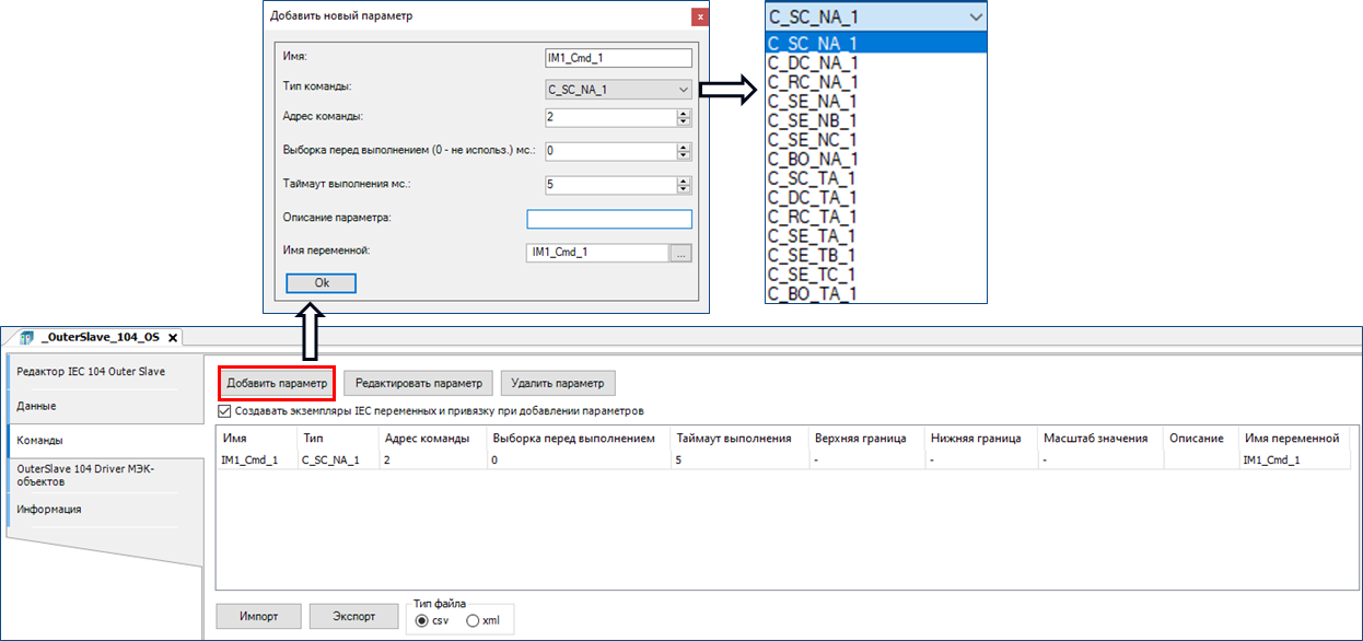 9.12. СОЗДАНИЕ И РЕДАКТИРОВАНИЕ ПАРАМЕТРА MASTER-УСТРОЙСТВА. КОМАНДЫ Создание и настройка параметров во вкладке «Команды» компонента «_OuterSlave_104_OS» выполняется аналогично тому, как это было рассмотрено ранее для Slave-устройства.