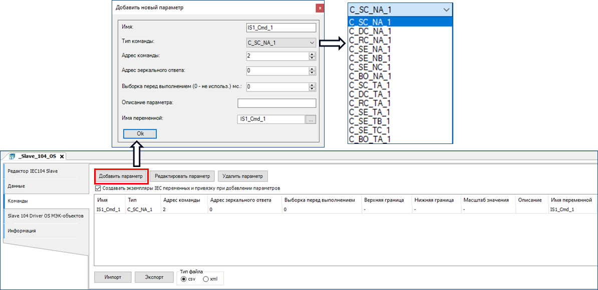 9.5. СОЗДАНИЕ И РЕДАКТИРОВАНИЕ ПАРАМЕТРА SLAVE-УСТРОЙСТВА. КОМАНДЫ