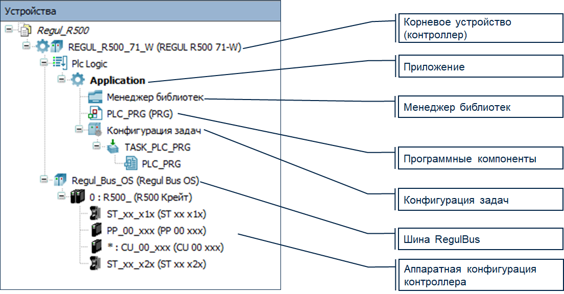 Приложение (Application), в дальнейшем загружаемое на контроллер, состоит из: