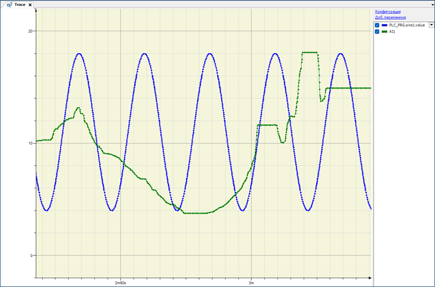 После загрузки трассировки в контроллер в поле окна «Trace» будут отображаться графики переменных в реальном времени.
