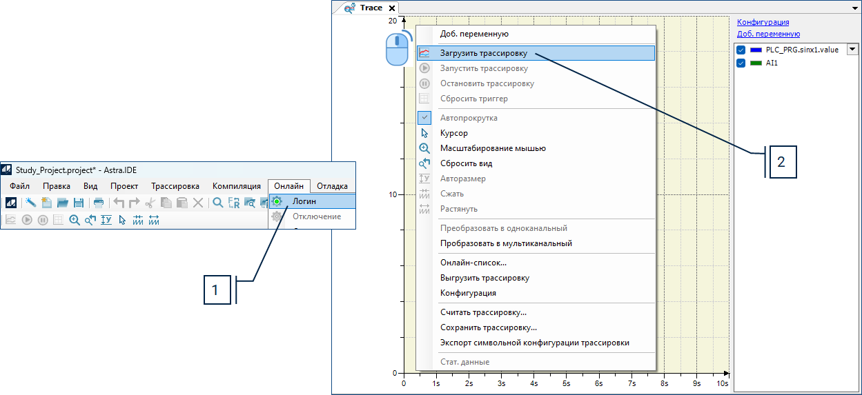 6.6. ТРАССИРОВКА. ЗАГРУЗКА В ПЛК