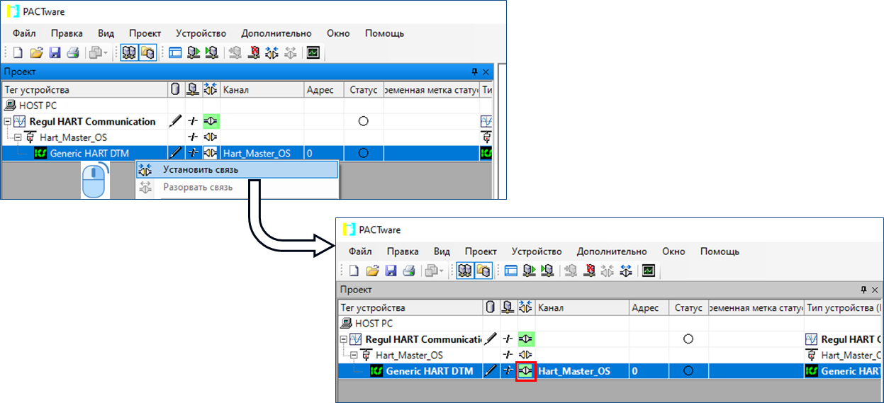 13.24. УСТАНОВКА СОЕДИНЕНИЯ С УСТРОЙСТВОМ Для установки соединения с устройством кликните по нему правой кнопкой мыши и выберите «Установить связь».