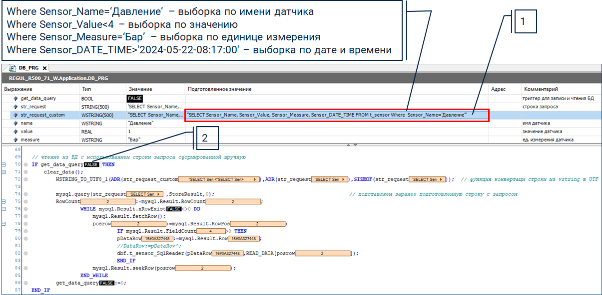 Задайте подготовленное значение переменной str_request_custom с учетом условия выборки и запишите его в контроллер комбинацией клавиш Ctrl+F7.