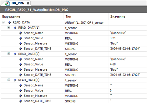 Наблюдайте за записью данных в поля массива READ_DATA. Предварительно выполнится очищение массива и будут вычитаны из базы данных только данные, удовлетворяющие условиям выборки.
