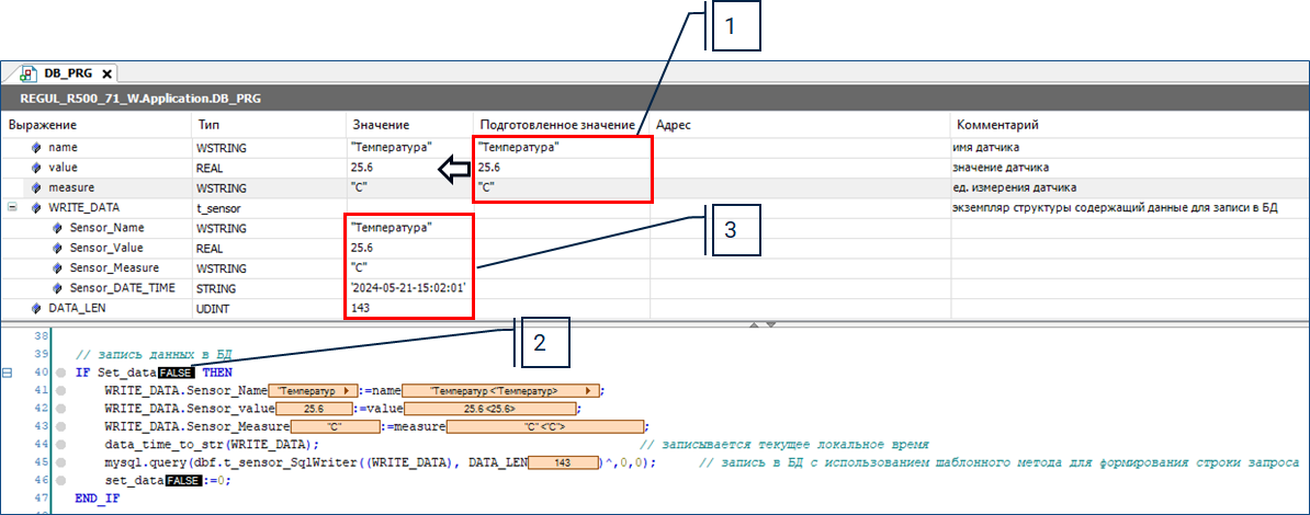Для записи значений в базу данных выполните следующие действия: