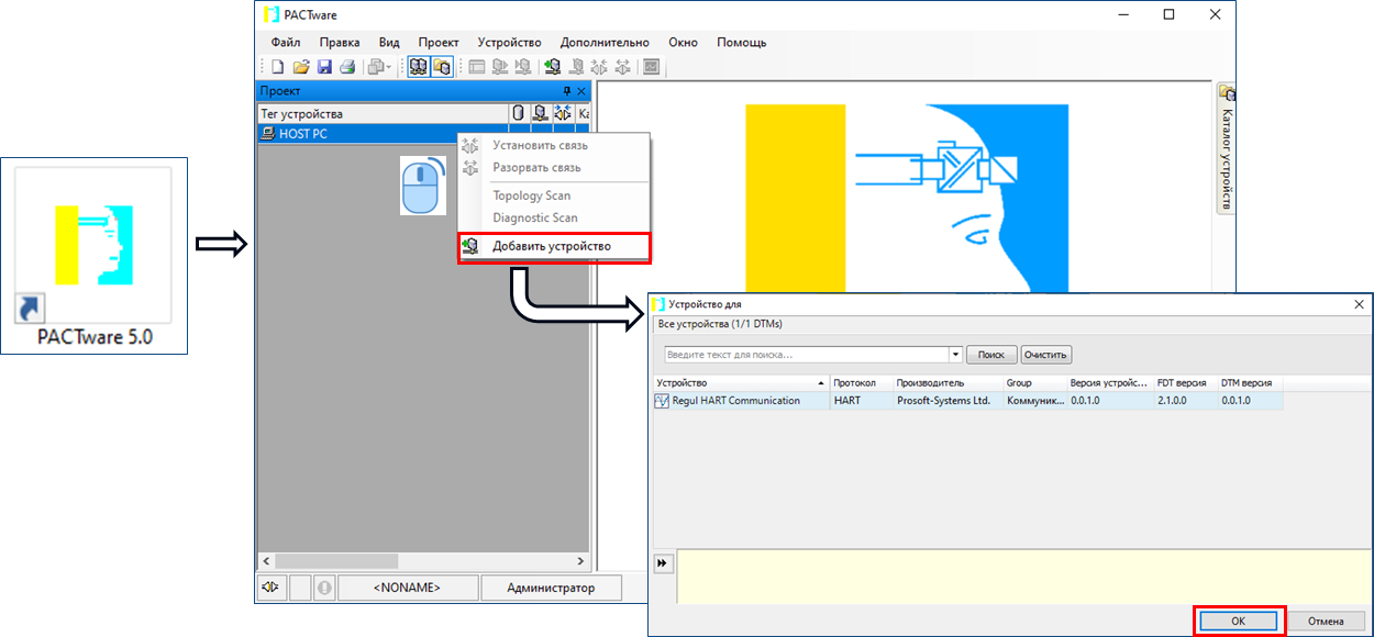 13.17. ЗАПУСК PACTware И ДОБАВЛЕНИЕ УСТРОЙСТВА
