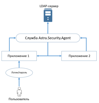 2. Приложение отправляет запрос службе Astra.Security.Agent, которая переадресует запрос LDAP-серверу.