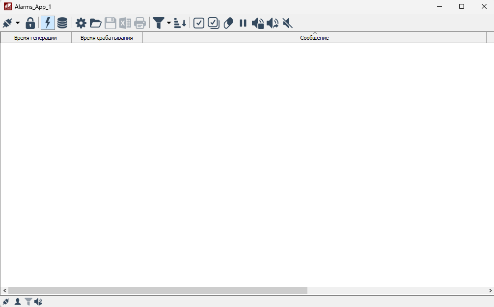 4.4.1.4.3.1.6.1.1. Alarms_App Экранная форма Alarms_App – представление типа Alarms в виде формы. Не имеет собственных свойств и функций. Используется для запуска в виде самостоятельного приложения.