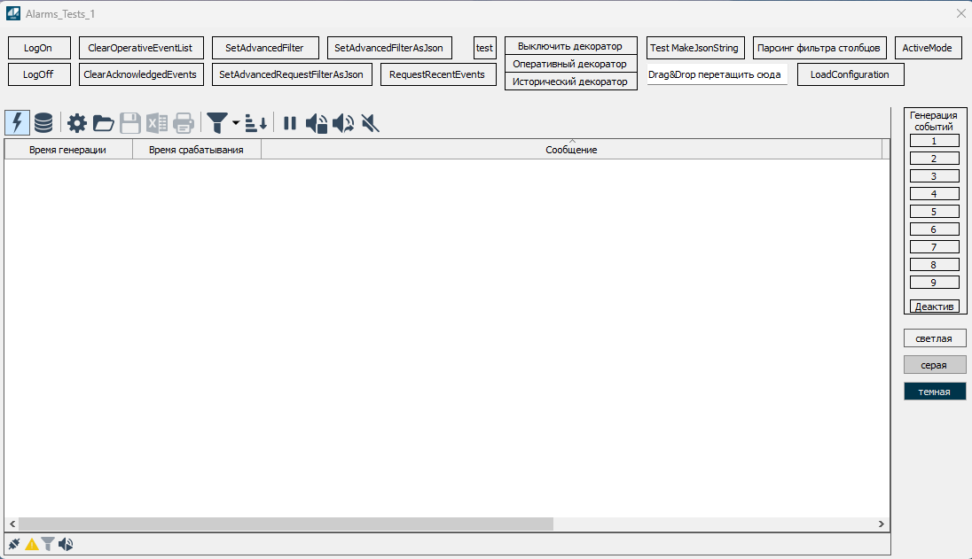 4.4.1.4.3.1.6.1.2. Alarms_Tests Форма предназначена для ознакомления с примерами использования элементов Astra.HMI.Alarms в проекте Astra.HMI.