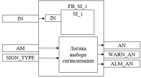 Блок FB_SI_1 базового типа SI_1 используется для отображения состояния оборудования и обнаружения неисправности модуля дискретных входов за счет генерации аварийного сигнала IOP.