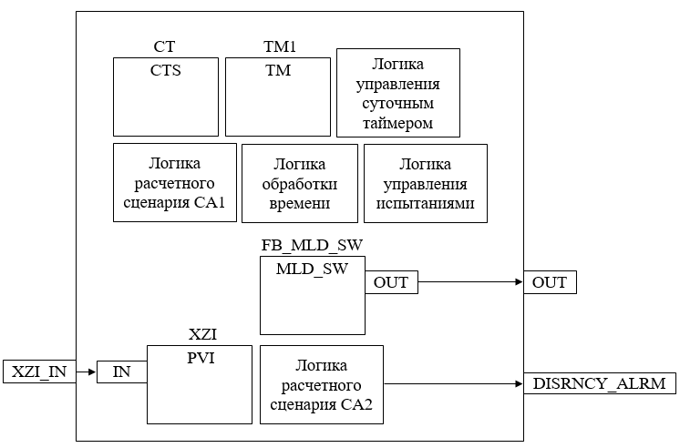 Подпрограмма логики расчетного сценария CA1 используется для фиксации метки времени событий во время испытаний (начало испытаний, срабатывание защиты во время испытаний и т.д.).