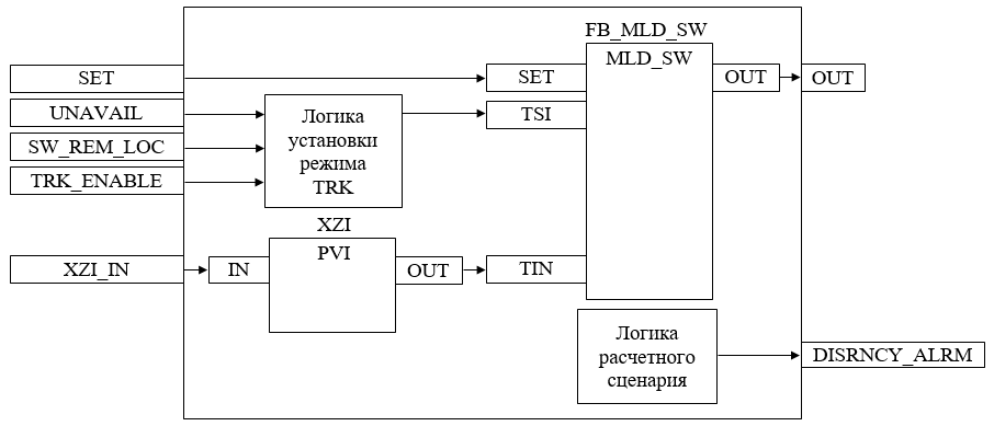 Блок FB_MLD_SW базового типа MLD_SW используется для обработки окончательного значения выхода для клапана или двигателя. Выход будет сравниваться со значением обратной связи для генерирования сигнала об отклонении.