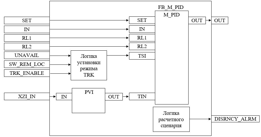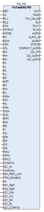 Технологический функциональный блок PID выполнен на основе базового функционального блока M_PID и, соответственно, наследует его функции.