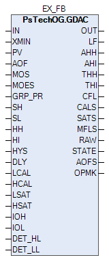 Функция технического обслуживания: Для всех входов GD предусмотрена функция блокировки автоматики для технического обслуживания. Выход типового элемента MOS будет подключен к клемме MOS типового элемента GD для блокировки тега отключения, сформированного при обработке аналогового входящего сигнала.