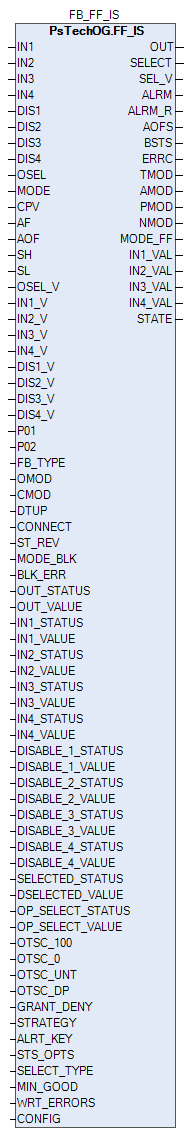 Блок FF_IS связывается с блоком IS (селектор входов) полевого устройства Fieldbus для обеспечения управления и контроля со стороны РСУ и АРМ оператора.