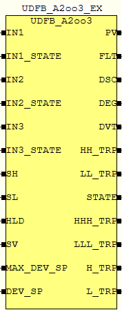 Голосование снизится до 1oo2, если какой-либо из входов находится в обслуживании (флаги MA1, MA2 или MA3 равны TRUE) или в состоянии результирующего отказа. Данные флаги принимаются в виде битов с входов IN1_STATE, IN2_STATE и IN3_STATE.