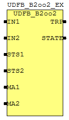 Этот функциональный блок выдает TRUE на TRP, когда любой из входов IN1 и IN2 исправен (TRUE) и IO, с которым связан вход, не находится в состоянии BAD (STS1 и STS2, соответственно, TRUE).