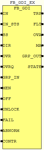 Цифровой вход с поля подключается к IN. Через вход SS (заданию типа срабатывания защит от HMI) блок предоставляет возможность трактовать контакт как размыкающий (FALSE = NC) или замыкающий (TRUE = NO).