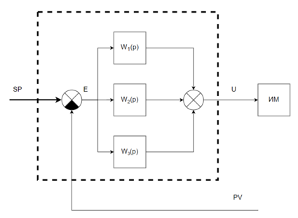 рассчитывать управляющее воздействие в зависимости от рассогласования фактического значения регулируемого параметра и заданной величины (ошибки регулирования) по передаточной функции;