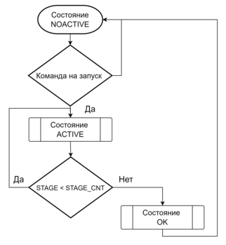 Когда успешно будет выполнен последний шаг (CNT = STAGE_CNT), программа перейдет в состояние ОК.