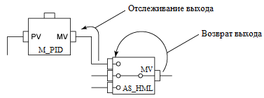 В любом режиме функция возврата выхода блока автоселектора (AS_HML) устанавливает в качестве значений входного сигнала (от RV1 до RV3) значения, преобразованные в диапазон управляемой переменной MV.