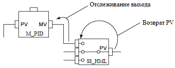 Функция возврата PV приводит невыбранные значения входного сигнала (от RV1 до RV3) в соответствие с выбранным значением сигнала (PV).