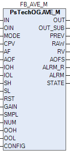 Блок (AVE_M) выполняет вычисления скользящего среднего входных данных, используя свой алгоритм вычислений и параметры установки.
