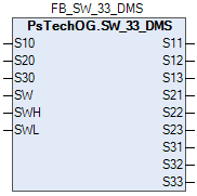 Блок трехполюсного трехпозиционного селекторного переключателя в режиме демультиплексора (SW_33_DMS) представляет собой функциональный блок, который изменяет пути прохождения сигналов в соответствии с командой переключения.