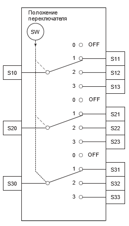 SW = 2. Значения со входов S10, S20, S30 передаются на выходы S12, S22, S32 соответственно.