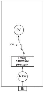 Функция калибровки позволяет вручную настраивать входной сигнал. Функция калибровки активируется, когда состояние данных входного значения ответа (PV) становится калибровкой (CALIBR). Это состояние называется статусом калибровки. Активация режима осуществляется при нажатии на кнопку "Калибровка" в окне параметров блока на АРМ оператора, после чего происходит удержание предыдущего значения переменной процесса PV и изменение состояния данных переменной процесса PV на NEFV (калибровка активирована, но значение не задано). При вводе нового значения переменной процесса PV ее состояние данных изменяется на CALIBR (калибровка).