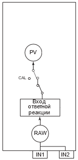 Функция калибровки позволяет вручную настраивать входной сигнал. Функция калибровки активируется, когда состояние данных входного значения ответа (PV) становится калибровкой (CALIBR). Это состояние называется статусом калибровки. Активация режима осуществляется при нажатии на кнопку "Калибровка" в окне параметров блока на АРМ оператора, после чего происходит удержание предыдущего значения переменной процесса PV и изменение состояния данных переменной процесса PV на NEFV (калибровка активирована, но значение не задано). При вводе нового значения переменной процесса PV ее состояние данных изменяется на CALIBR (калибровка).