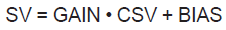 Расчет значения задания (SV) на основе значения задания при каскадном управлении (CSV) с последующим преобразованием полученного SV для определения значения управляющего выхода